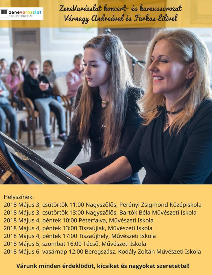Tehetséggondozó programunk keretében Várnagy Andrea zongoraművésznőnek turnét szerveztünk, melynek keretében több kárpátaljai településen koncertet adott leányával, Farkas Lilivel. Ahol arra lehetőség nyílt, a koncertek után a művésznő kurzust is tartott a növendékeknek.